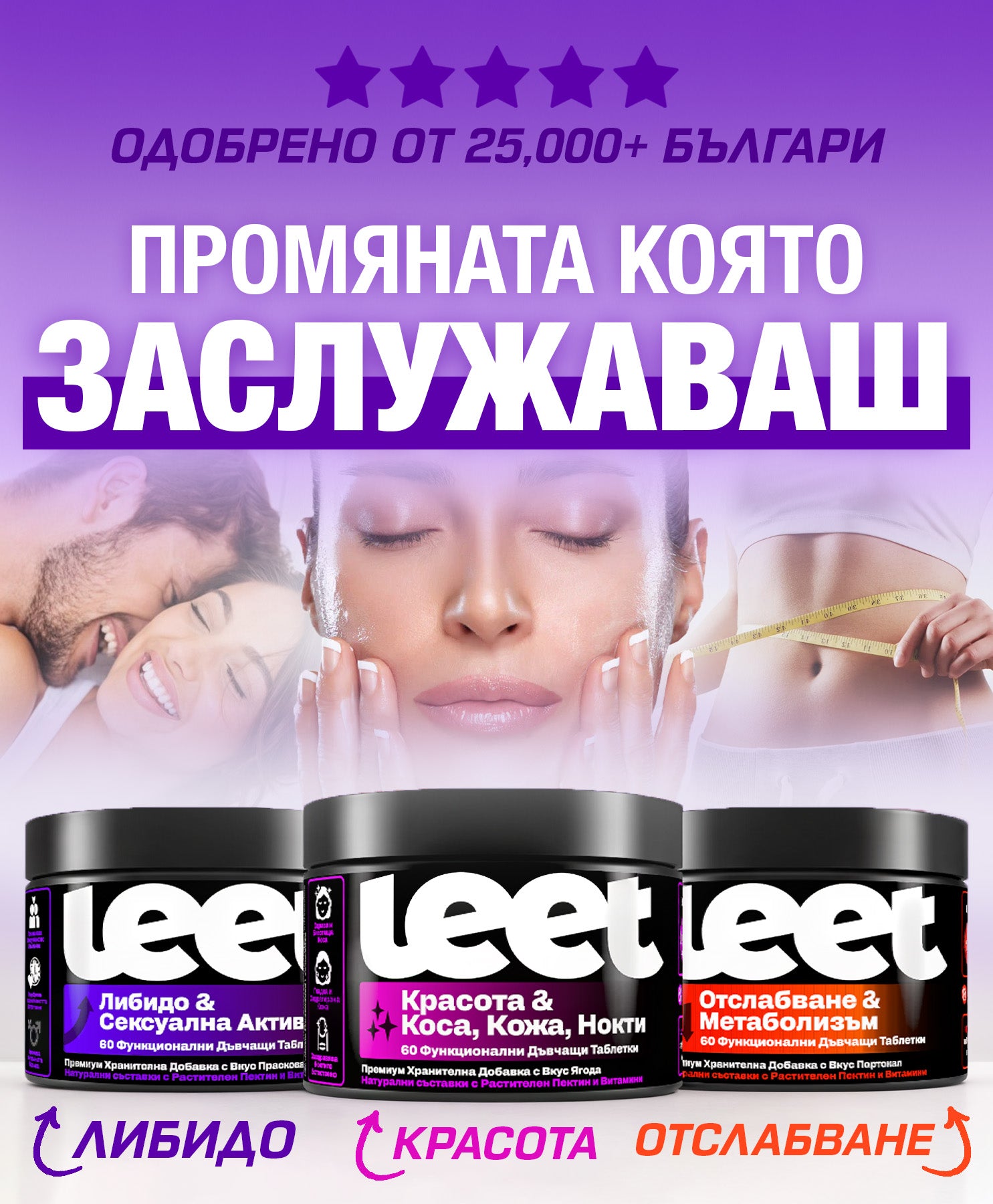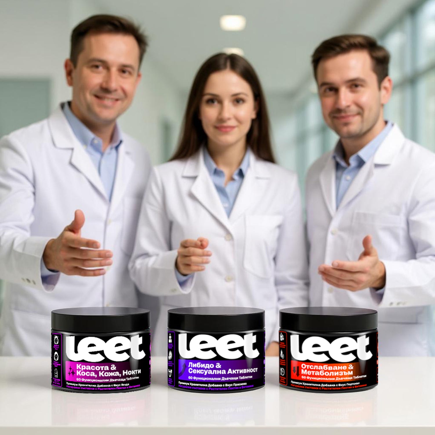 Leet Natural са натурални добавки под формата на дъвчащи таблетки – без ГМО, без захар, клинично тествани формули, създадени за хора, които искат реални резултати!